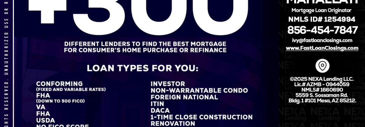 Hi, my name is Ivette Mahallati. I’m a Loan Officer with NEXA Lending LLC., offering personalized mortgage solutions, fast customized quotes, great rates and service with integrity.