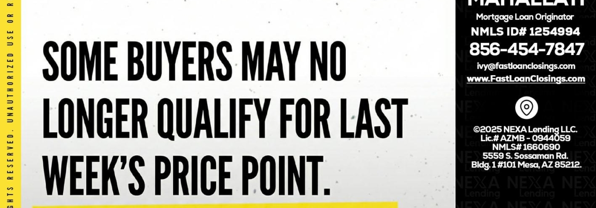 agents quick heads up - Ivette Mahallati -Mortgage Loan OriginatorHi, my name is Ivette Mahallati. I’m a Loan Officer with NEXA Lending LLC., offering personalized mortgage solutions, fast customized quotes, great rates and service with integrity.