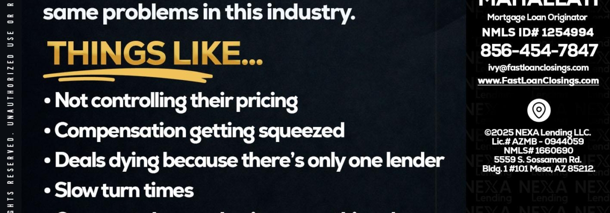 Hi, my name is Ivette Mahallati. I’m a Loan Officer with NEXA Lending LLC., offering personalized mortgage solutions, fast customized quotes, great rates and service with integrity.