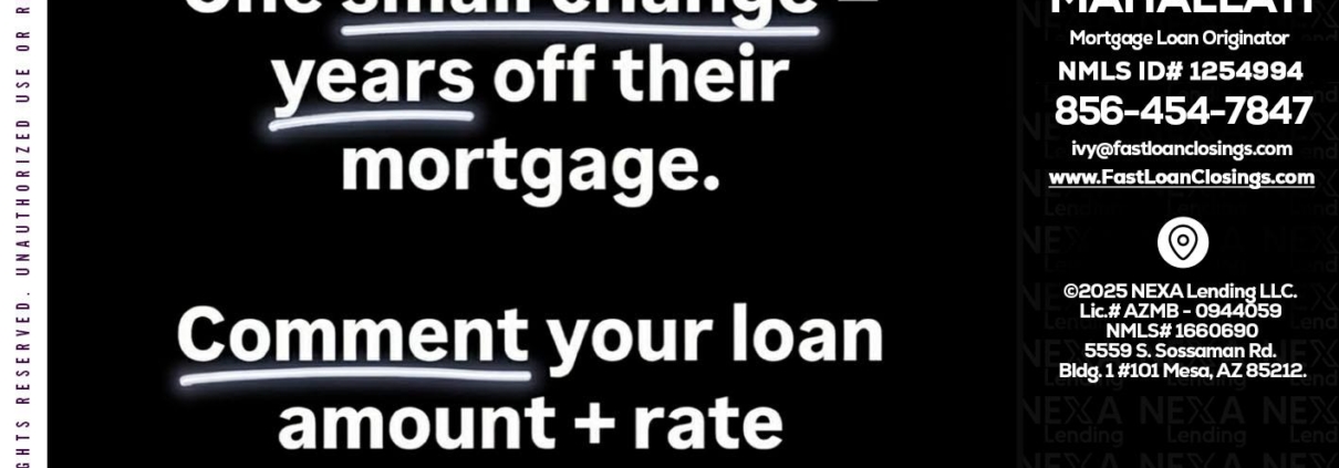 I JUST RAN - Ivette Mahallati -Mortgage Loan OriginatorHi, my name is Ivette Mahallati. I’m a Loan Officer with NEXA Lending LLC., offering personalized mortgage solutions, fast customized quotes, great rates and service with integrity.