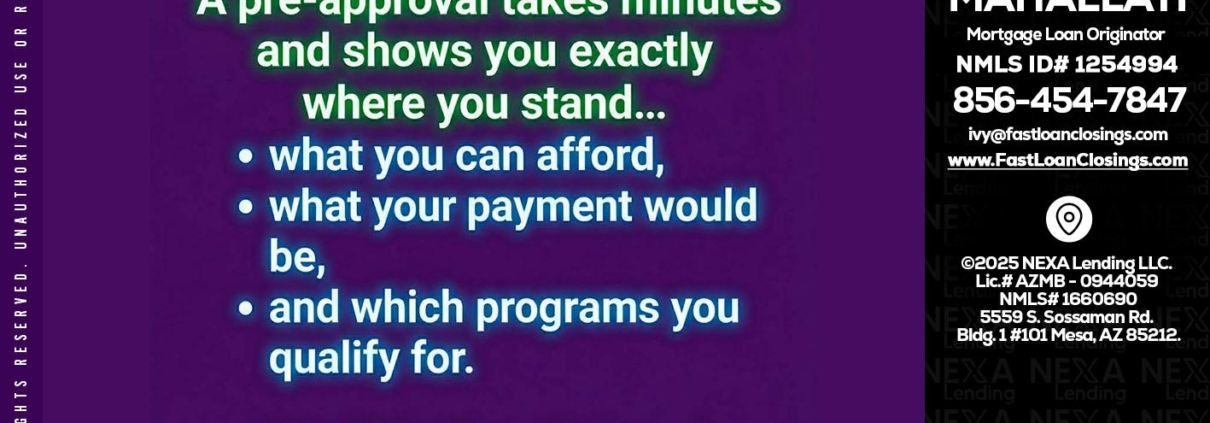 Hi, my name is Ivette Mahallati. I’m a Loan Officer with NEXA Lending LLC., offering personalized mortgage solutions, fast customized quotes, great rates and service with integrity.