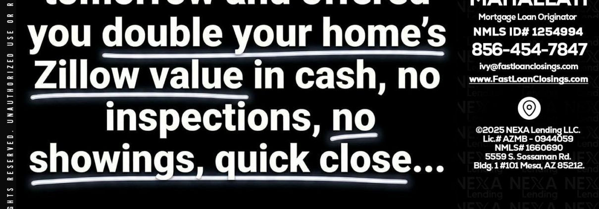 QUICK QUESTION - Ivette Mahallati -Mortgage Loan OriginatorHi, my name is Ivette Mahallati. I’m a Loan Officer with NEXA Lending LLC., offering personalized mortgage solutions, fast customized quotes, great rates and service with integrity.