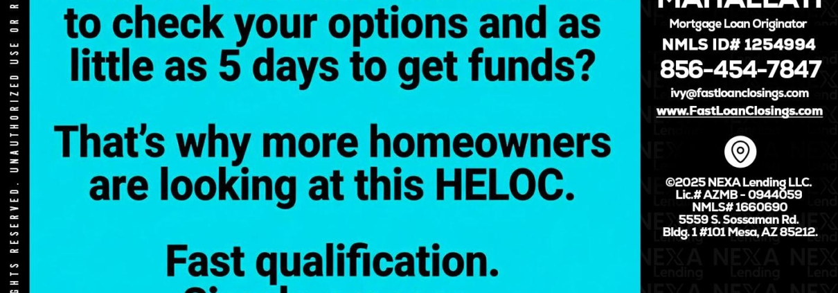 Hi, my name is Ivette Mahallati. I’m a Loan Officer with NEXA Lending LLC., offering personalized mortgage solutions, fast customized quotes, great rates and service with integrity.