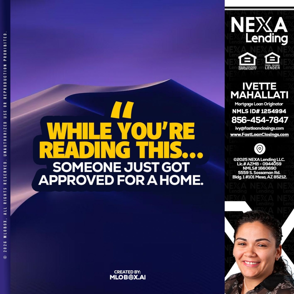 Hi, my name is Ivette Mahallati. I’m a Loan Officer with NEXA Lending LLC., offering personalized mortgage solutions, fast customized quotes, great rates and service with integrity.